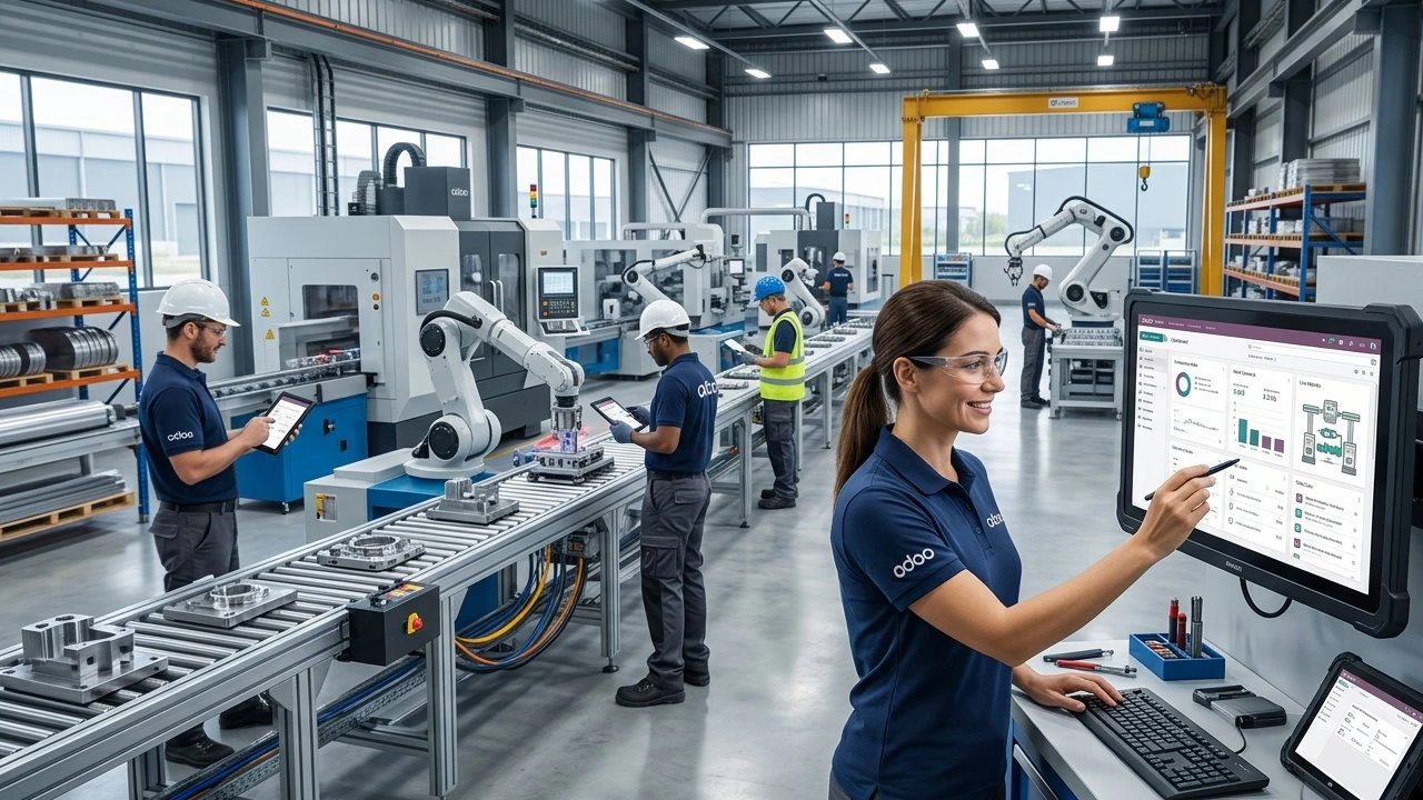 Digitalisasi proses produksi dengan Odoo MRP menghubungkan:
